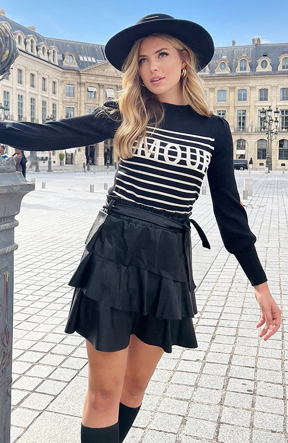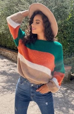 Product: Your new fave! Deze trendy trui is voorzien van een gestreept patroon, tekst op de voorkant en een ribstof. We LOVE it!