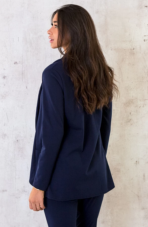 Product: Deze basic blazer in het marineblauw is de perfecte basic en is als co-ord te dragen met onze strik broek in het marineblauw.