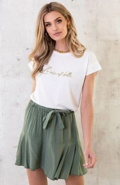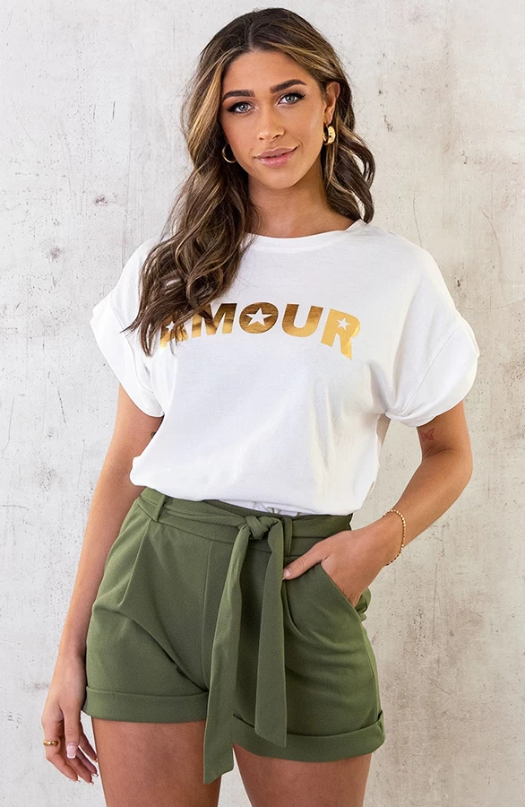 Product: Deze korte broek in het legergroen is de perfecte basic voor dit seizoen! Het korte broekje is te combineren met onze basic blazer in het legergroen!