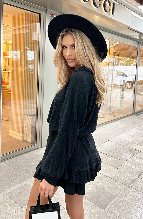 Product: Katoenen blousjes zijn een múst het komende seizoen! Deze knopen blouse is super leuk om te combineren met de bijpassende ruches skort!