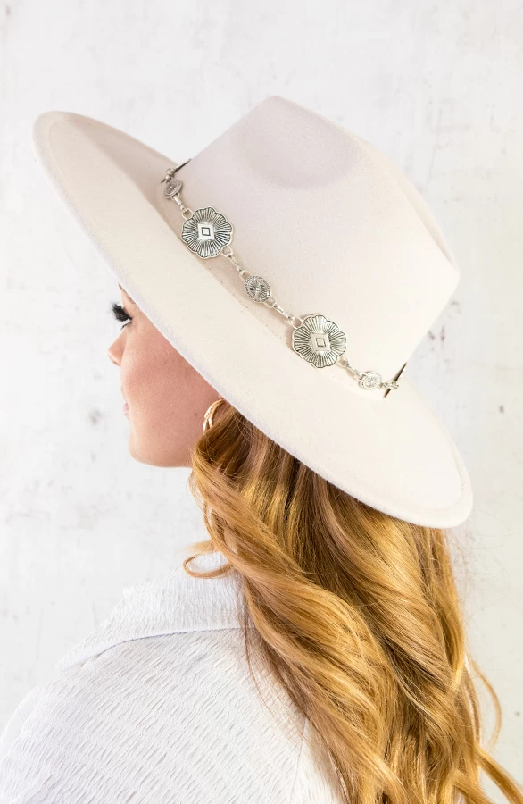 Product: WOW! Deze hoed is dé finishing touch voor jouw favoriete look! De hoed is voorzien van zilveren details en heeft een hoofdmaat van 59 cm. De hoed is verstelbaar!