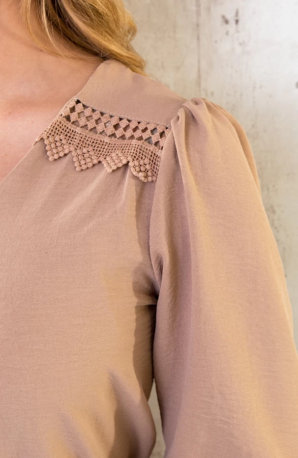 Details: v-hals, lange mouwen, elastiek in de taille en elastiek bij de mouwen Materiaal: 100% Polyester
