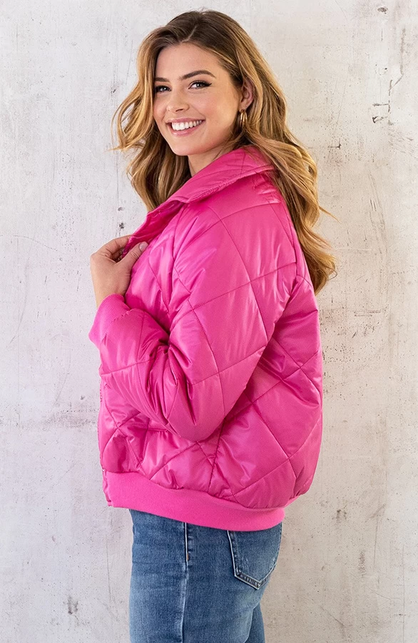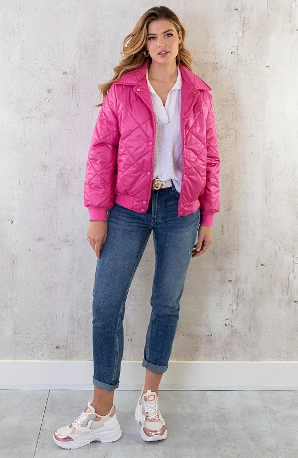 Product: Eyecatcher alert! Hoe gaaf is deze roze bomber?! Het bomberjacket is voorzien van een knoopsluiting en steekzakken.