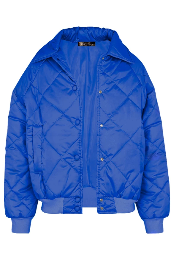 Product: WAUW! Dit gave jasje is een múst voor alle fashionista’s! De kobaltblauwe bomber is voorzien van een knoopsluiting en een geruit patroon.
