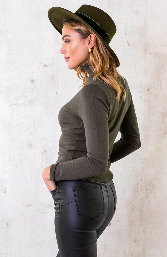 Product: De coltrui; hét item dat absoluut niet mag ontbreken in jouw fashiongarderobe! Shop de trui in deze donkere army kleur, makkelijk te combineren met al jouw kledingstukken! De coltrui sluit mooi aan, bevat veel stretch en zit daarom heerlijk comfy!