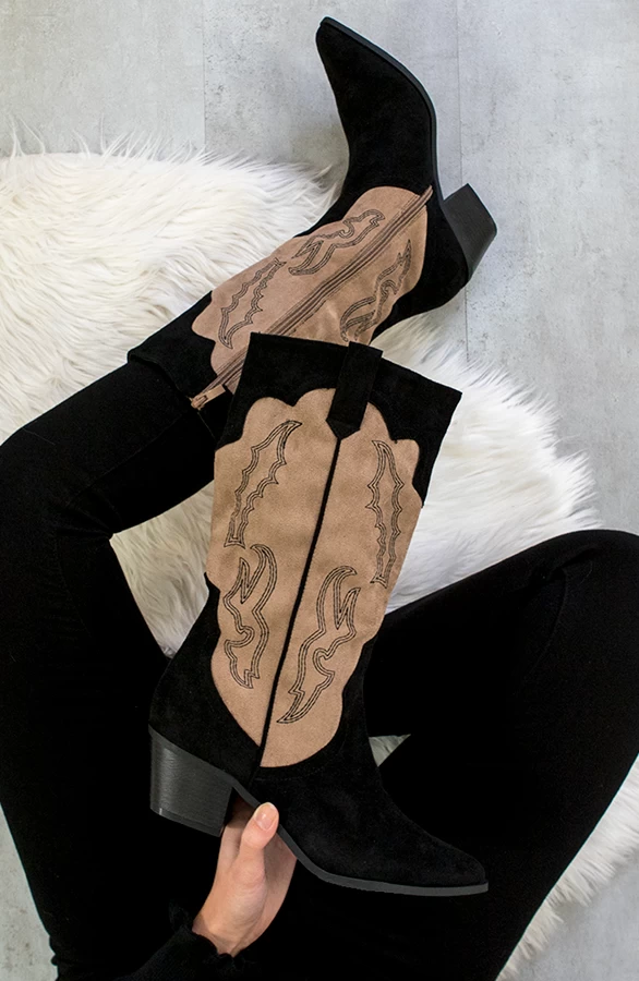 Product: WAUW! Maak een fashion statement met deze eyecatchers! De hoge cowboylaarzen zijn voorzien van een blokhak en een puntige neus. We are in LOVE!