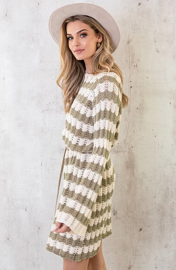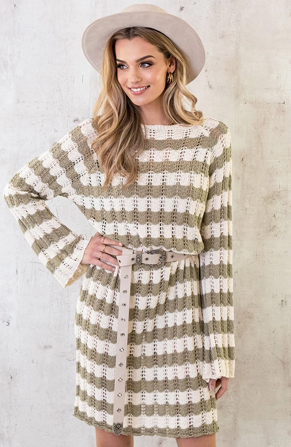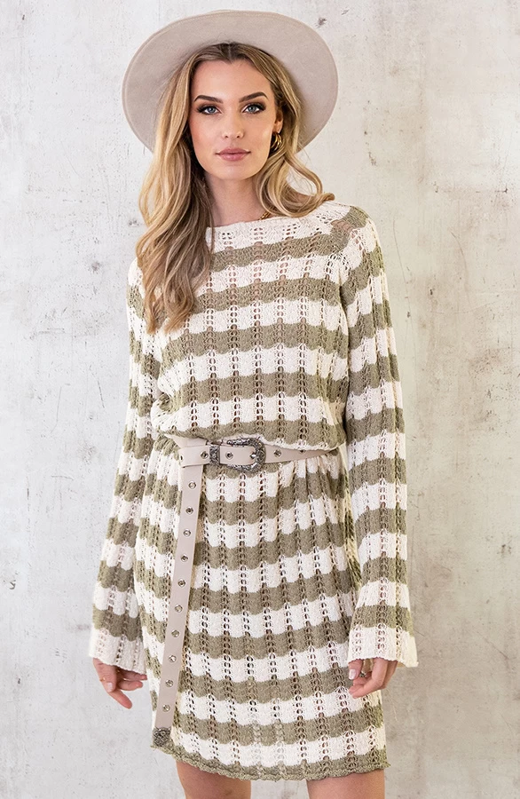 Product: Dé Musthave van dit moment! Dit gehaakte jurkje is voorzien van flared mouwen, een ronde hals en een gestreept patroon. Geen tijd voor twijfel ladies! Deze jurkjes …