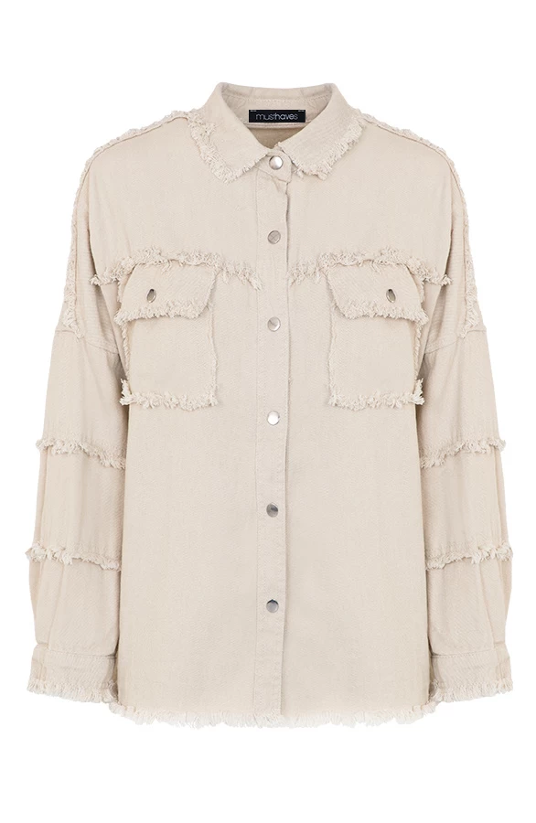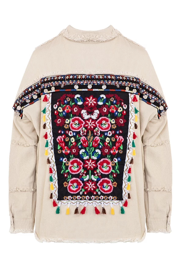 Details: franje, lange mouwen, borstzakken, drukknoopjes, gerafeld, geborduurde details en print op de achterkant Materiaal: 100% Katoen