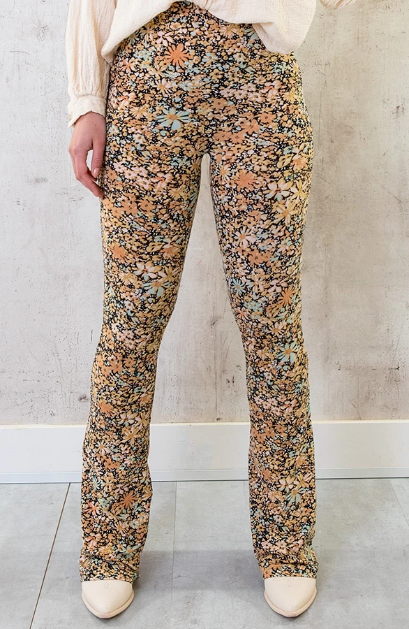 Product: Deze bloemen flared broek is dé trend van NU! Dit model is beschikbaar in verschillende printjes en kleuren, LOVE IT!