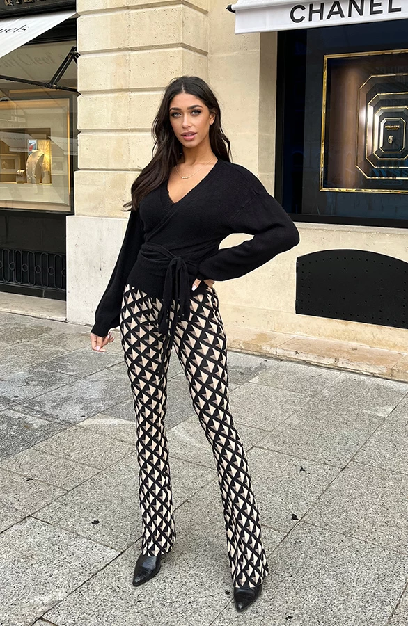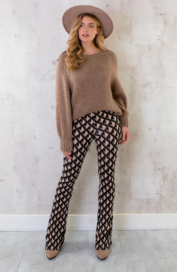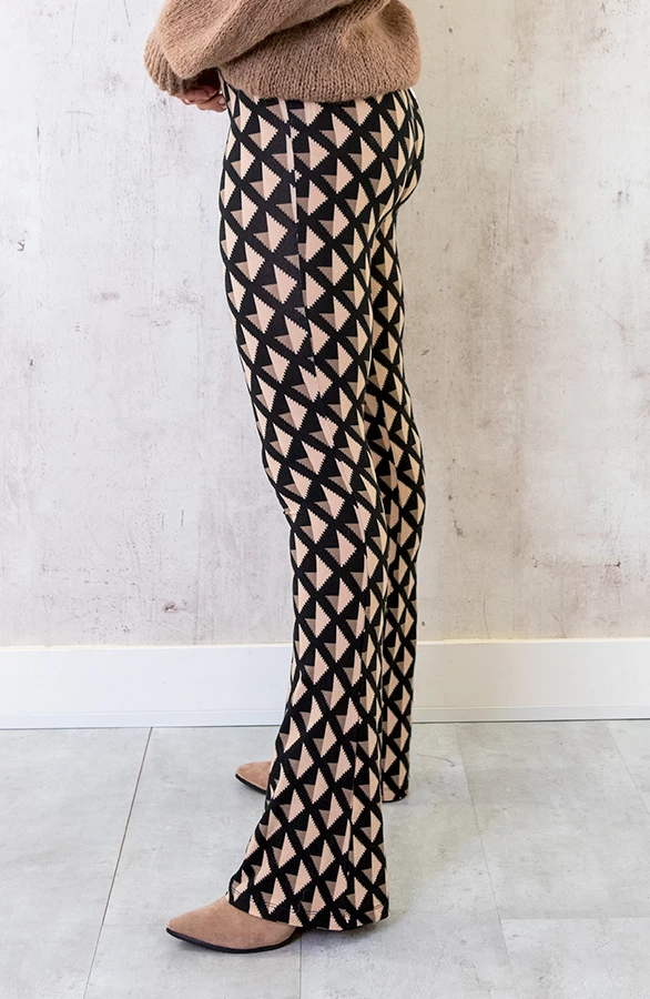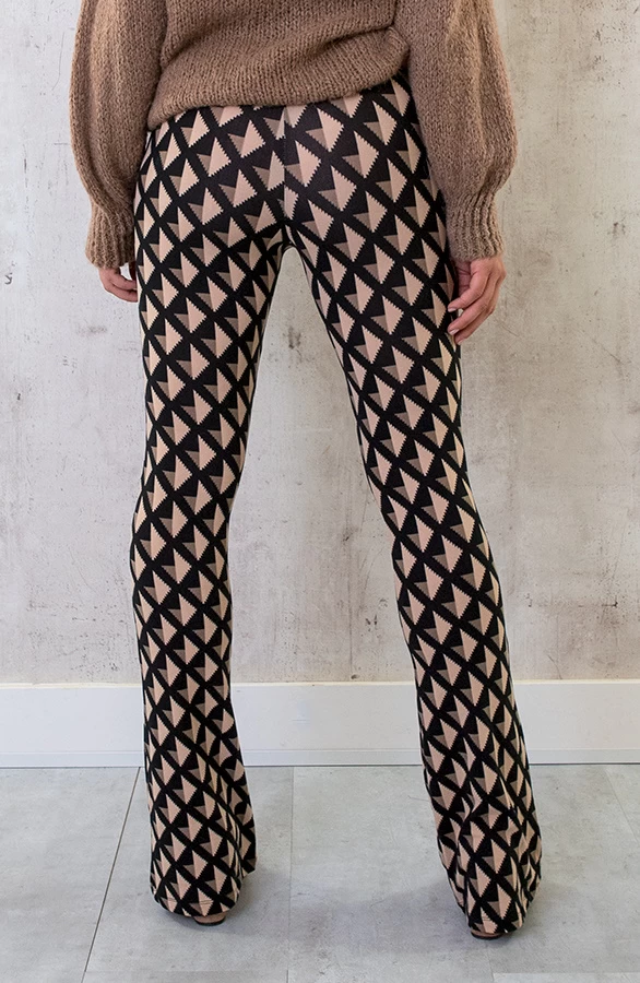 Product: Ohmy! Hoe leuk is deze nieuwe print?! De flared broek is voorzien van veel stretch en een zachte stof.