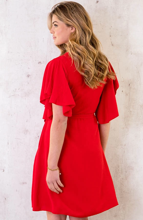 Product: Deze jurk is echt een eyecatcher! De jurk is voorzien van elastiek in de taille met een bijpassend ceintuur en een v-hals.
