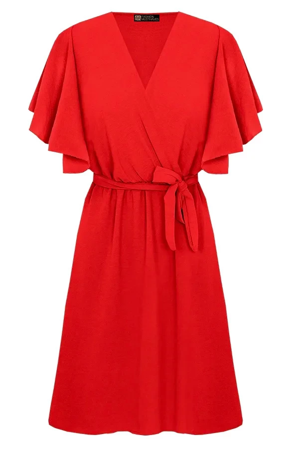 Details: v-hals, vleermuismouwen, bijpassend ceintuur in de taille en elastiek in de taille Materiaal: 100% Polyester