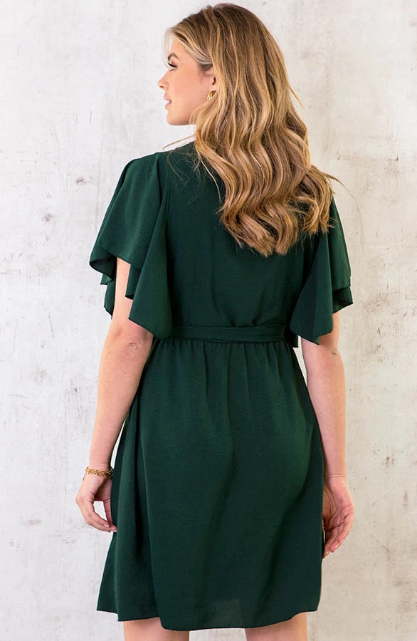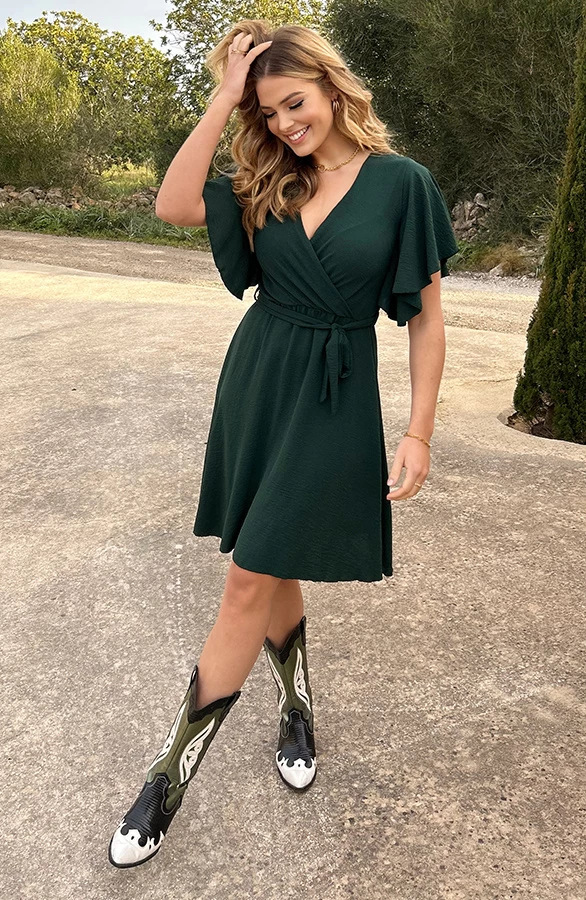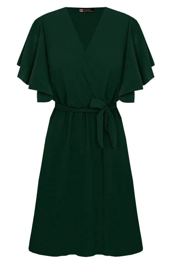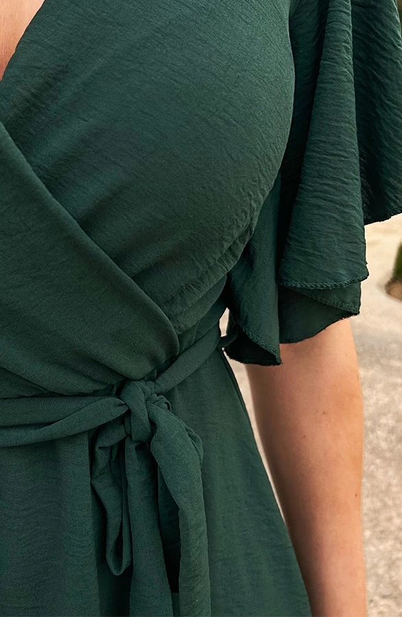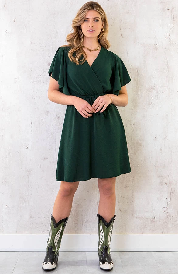 Details: v-hals, vleermuismouwen, bijpassend ceintuur in de taille en elastiek in de taille Materiaal: 100% Polyester