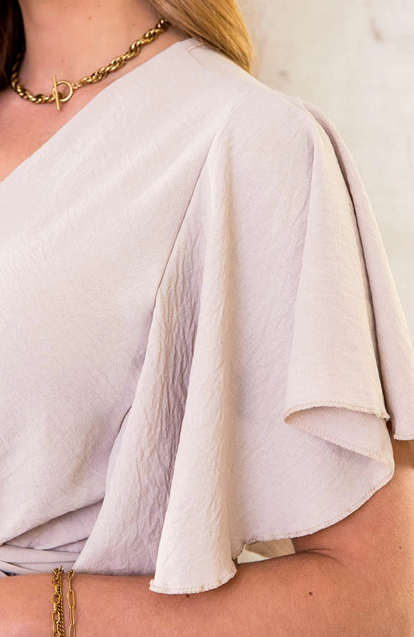 Details: v-hals, vleermuismouwen, bijpassend ceintuur in de taille en elastiek in de taille Materiaal: 100% Polyester