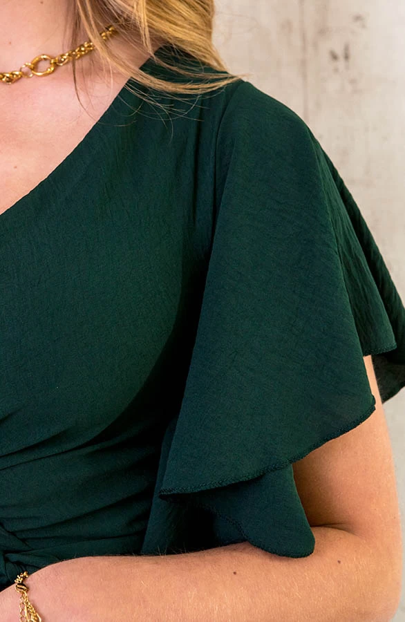 Details: v-hals, vleermuismouwen, bijpassend ceintuur in de taille en elastiek in de taille Materiaal: 100% Polyester