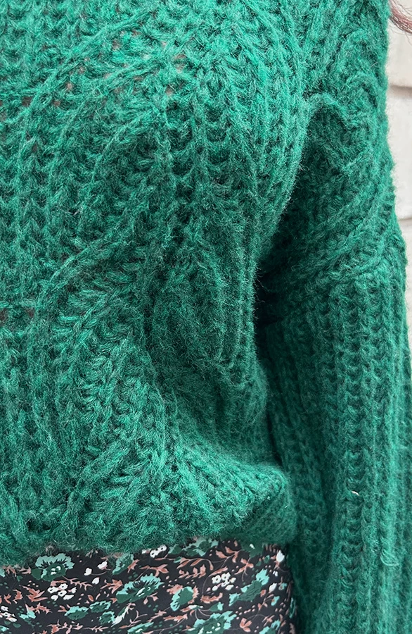 Product: Yay! Deze mega fijne trui is een aanwinst voor jouw garderobe! De smaragdgroene gebreide trui voelt zacht aan en is voorzien van een boothals.