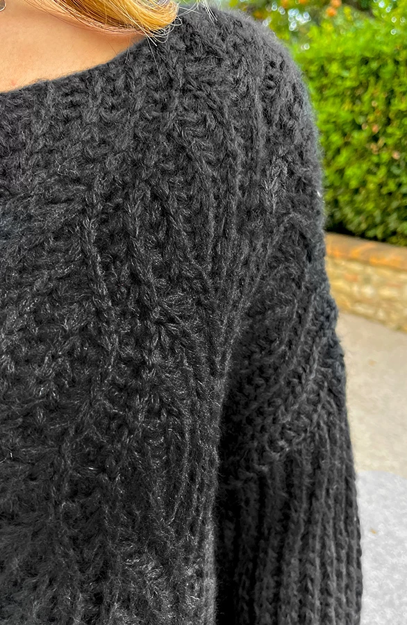 Product: Hoe leuk is deze zwarte gebreide trui?! De trui voelt zacht aan en is voorzien van een boothals. Een echte MUSThave!