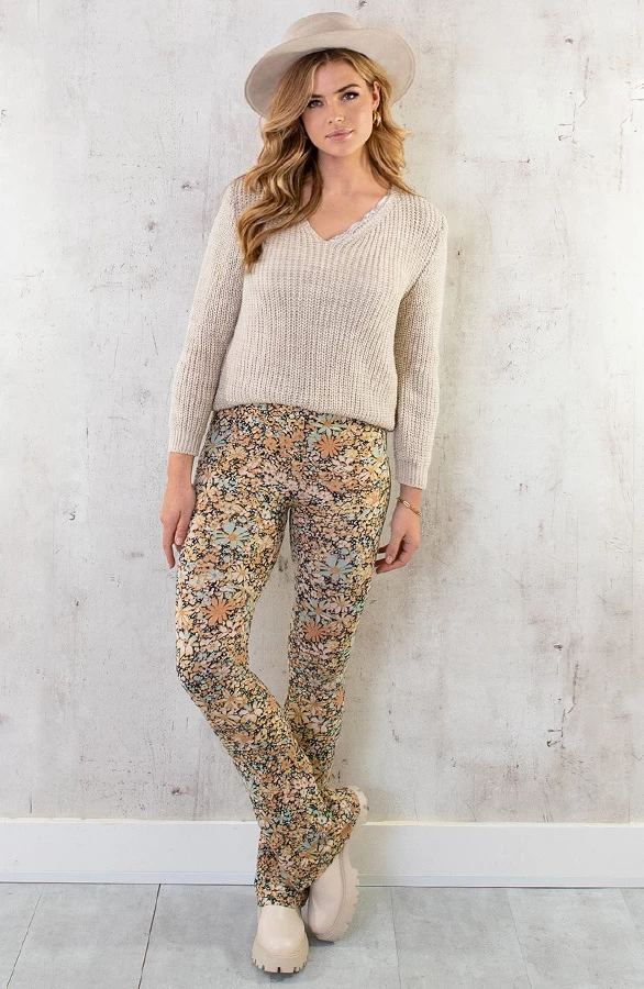 Product: Je kan nooit genoeg beige truien hebben! Deze beige gebreide trui is voorzien van een v-hals en lange mouwen.