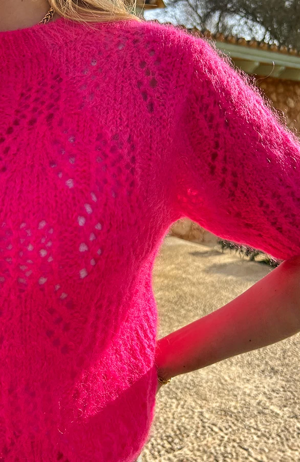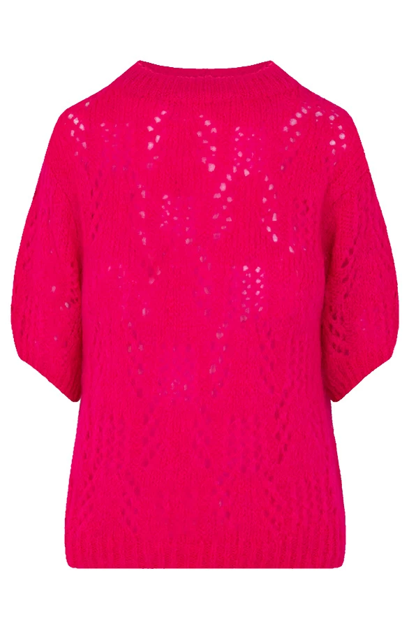 Details: ronde hals, korte mouwen en gehaakte stof Materialen: 42% Acryl, 40% Mohair, 18% Polyamide