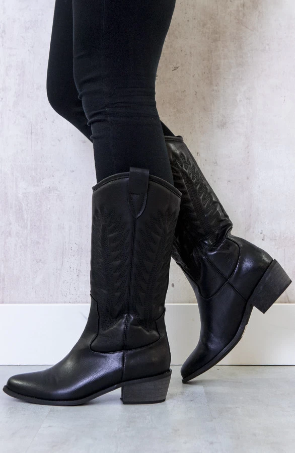 Product: Deze hoge cowboylaarzen voor dames maken al jouw outfits 100% fashionable! De laarzen zijn gemaakt van hoogwaardig imitatieleer en hebben een blokhak.