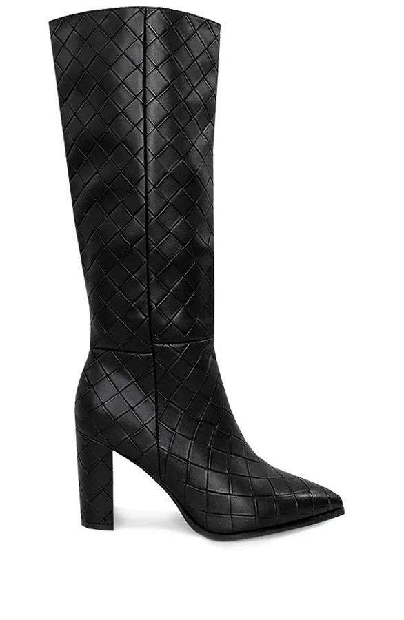 Details: blokhak, ritssluiting, zool is niet uitneembaar, puntige neus en geblokt patroon Materiaal: 100% Kunstleer