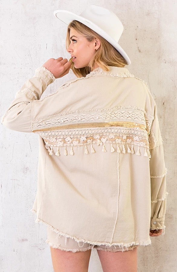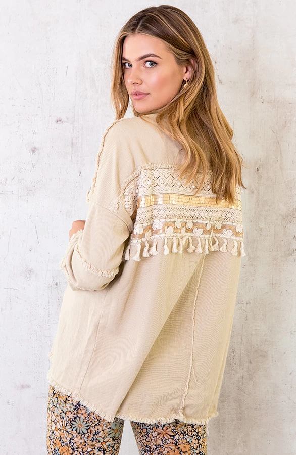 Product: Omy! Dit beige tassel jasje voor dames heeft een bewerkte achterkant en is dé trend van NU! Gespot bij vele bloggers, celebs en it-girls, LOVE IT!