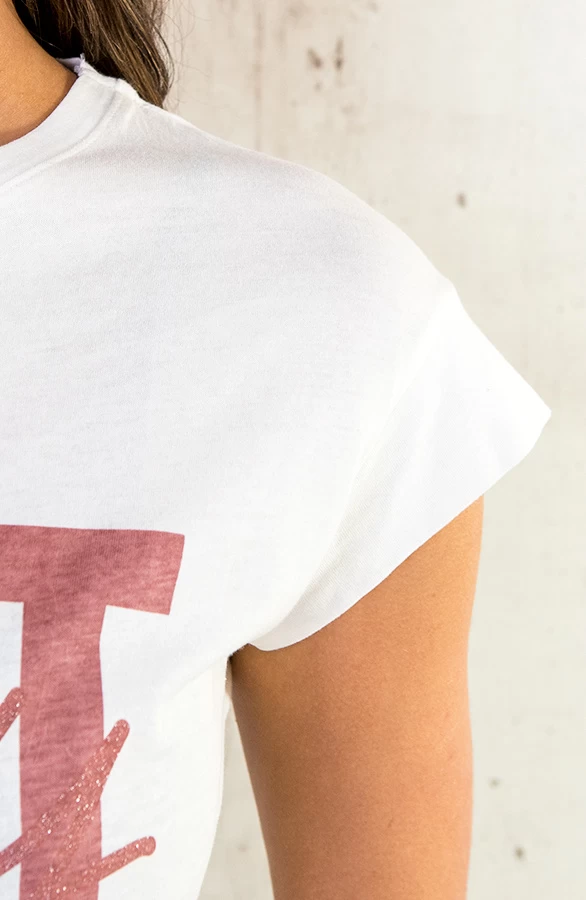 Details: ronde hals, korte mouwen, tekst op de voorkant en glitters Materiaal: 100% Katoen