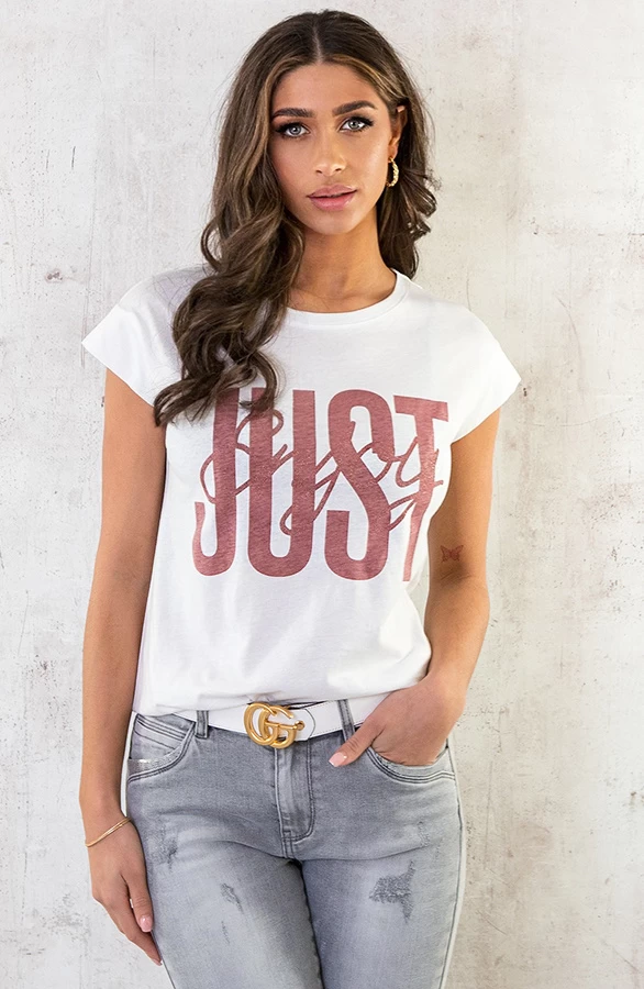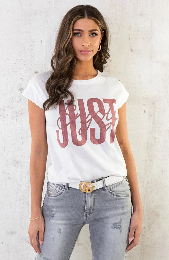 Product: Je kan nooit genoeg statement tee’s hebben! Deze katoenen top met tekst op de voorkant is de perfecte basis voor een fashionable look!