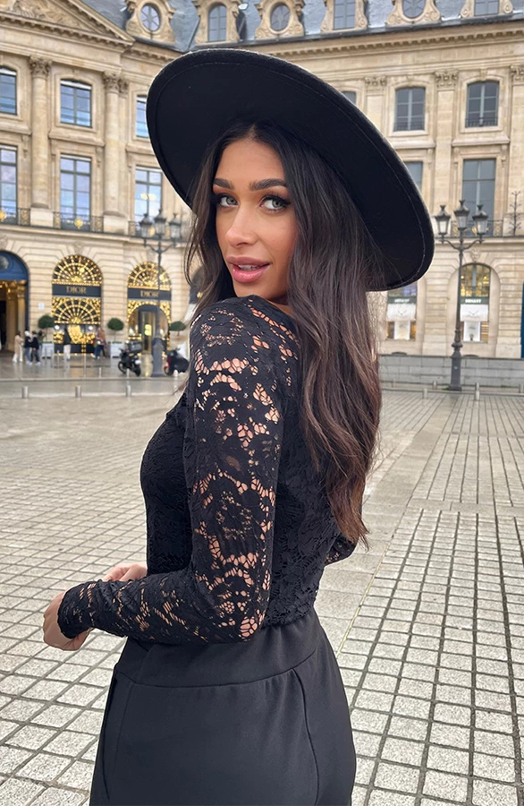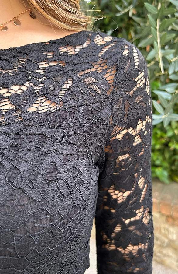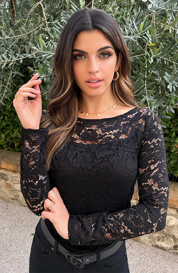 Product: Wauw! Deze zwarte top is een aanwinst voor jouw garderobe! De top is voorzien van kant en lange mouwen.