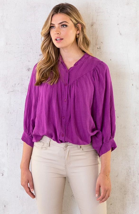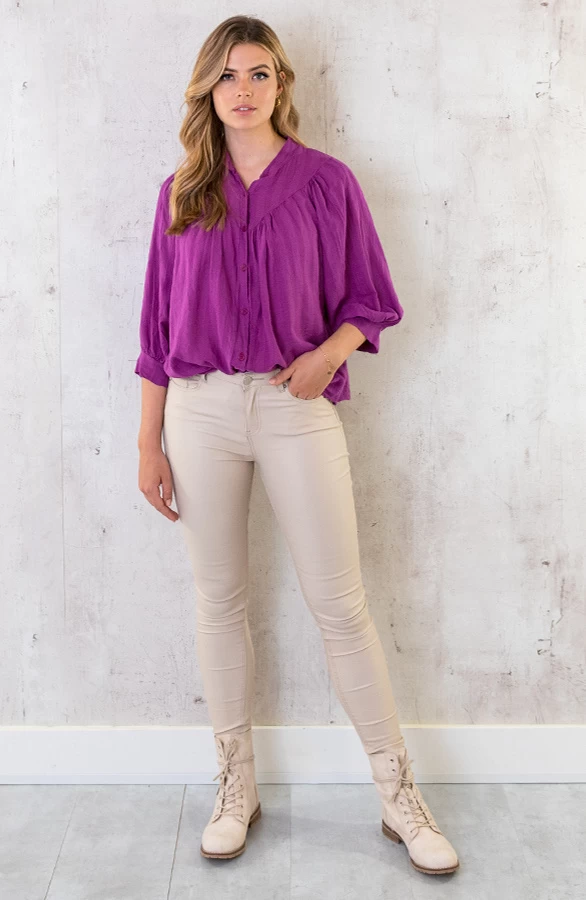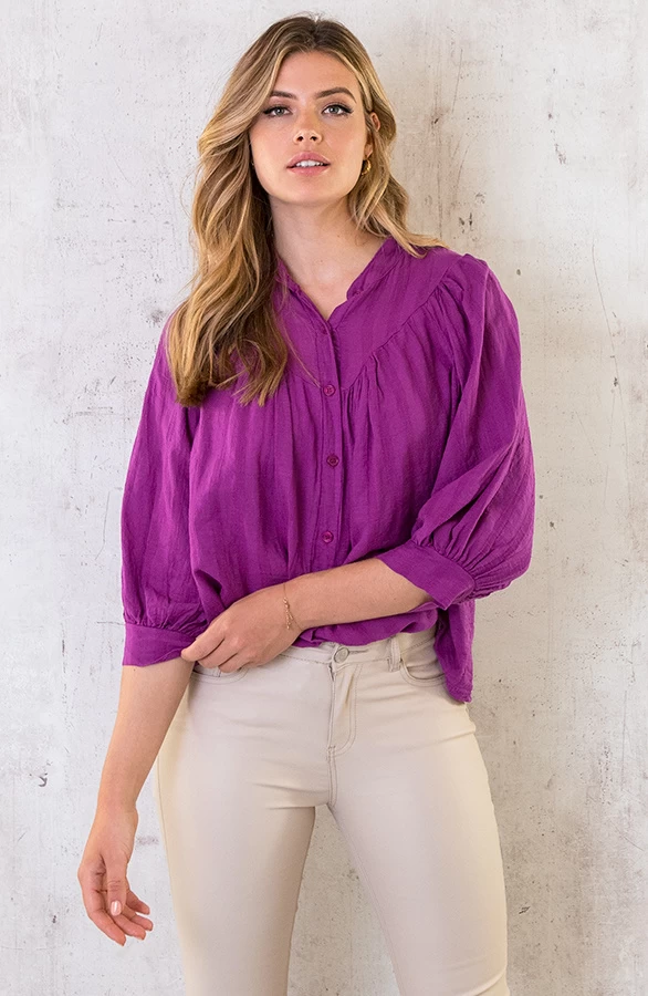 Product: Poppin color! Met deze blouse ben jij helemaal on trend! Én super comfy deze heerlijke katoenen stof.
