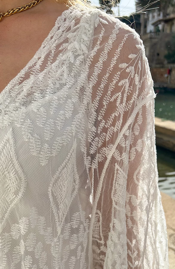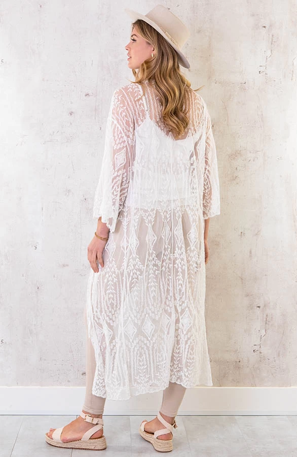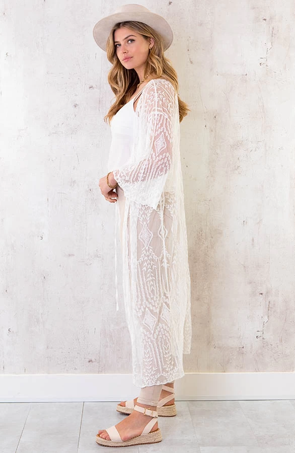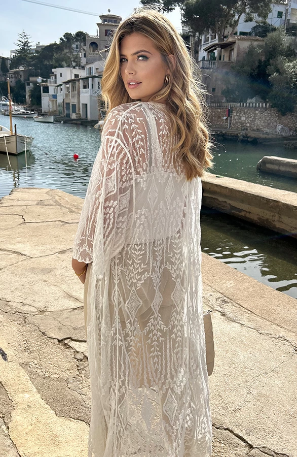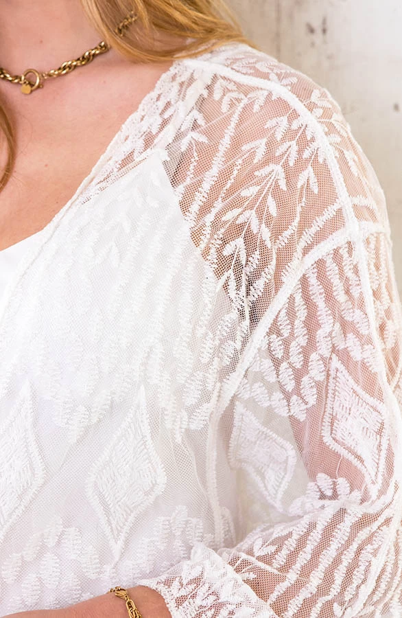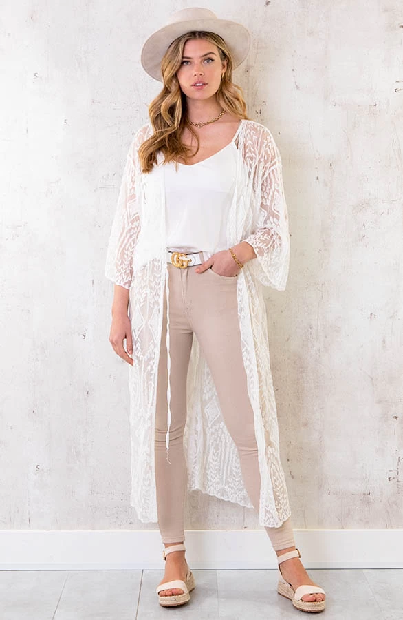 Product: OMY! Deze kimono moet je hebben! De kanten kimono met korte mouwen is voorzien van een lint om te strikken.