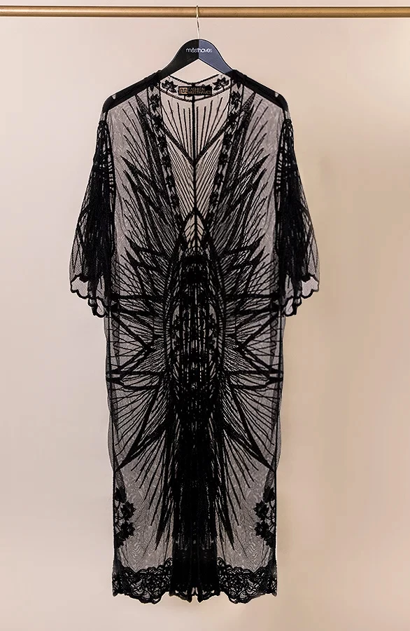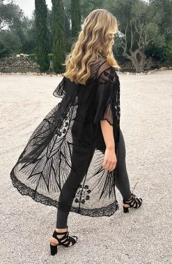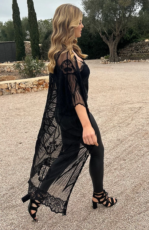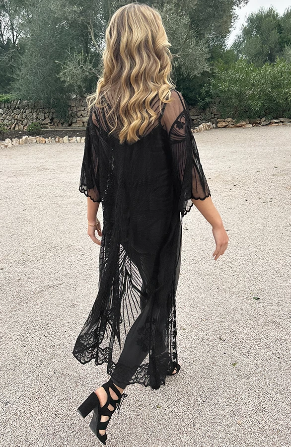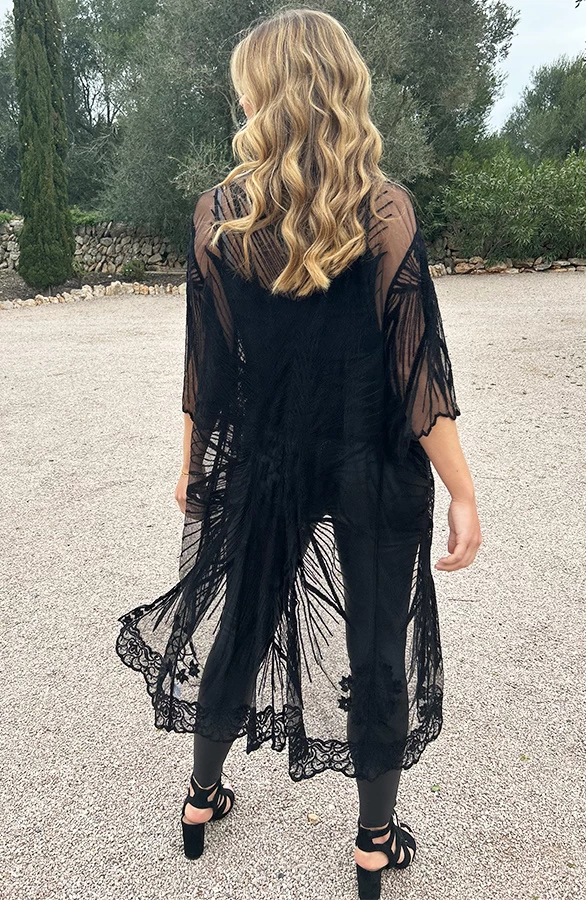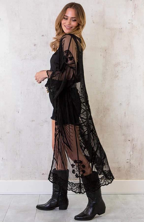 Product: Fashion babes opgelet! Deze kanten kimono is voorzien van kant en een lint om te strikken.