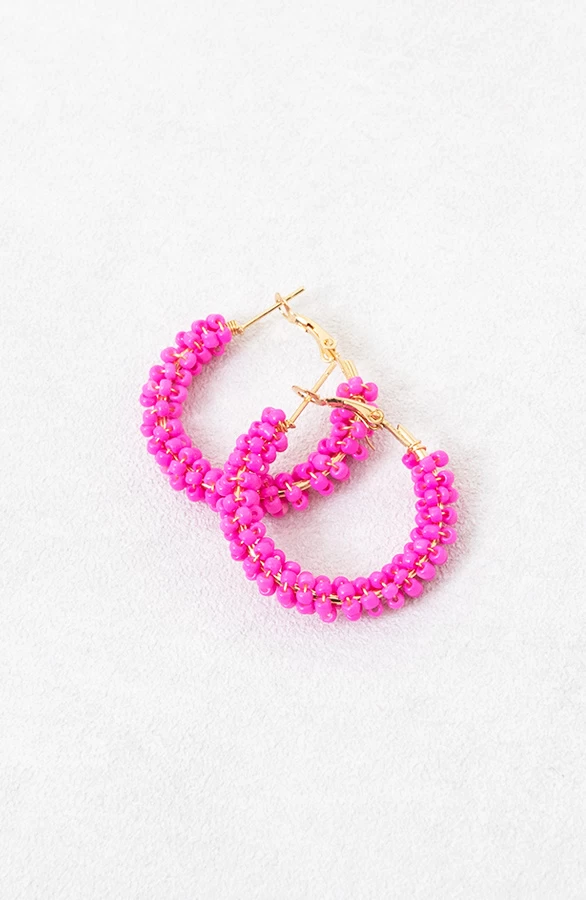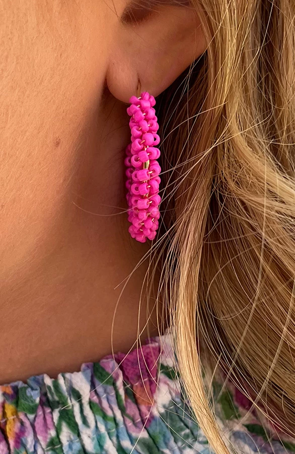 Product: Wij zijn in LOVE met deze roze kralen oorbellen! De oorringen zijn volledig nikkelvrij en zijn dé finishing touch voor jouw fashionable look!