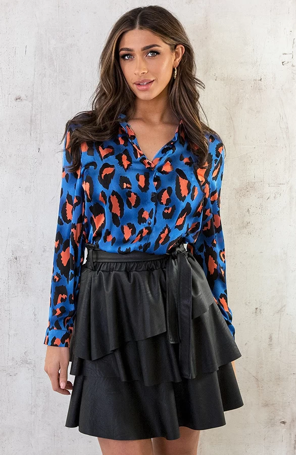 Product: Oh my! Deze Musthave wil je hebben! De blouse met leopard print is voorzien van een glanzende stof en een knoopsluiting.