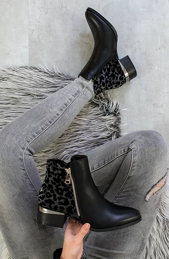 Product: Deze leuke panterlaarsjes zijn een perfecte aanvulling voor jouw schoenencollectie! De laarzen zijn voorzien van een velours panterprint en metallic glitterdraad.