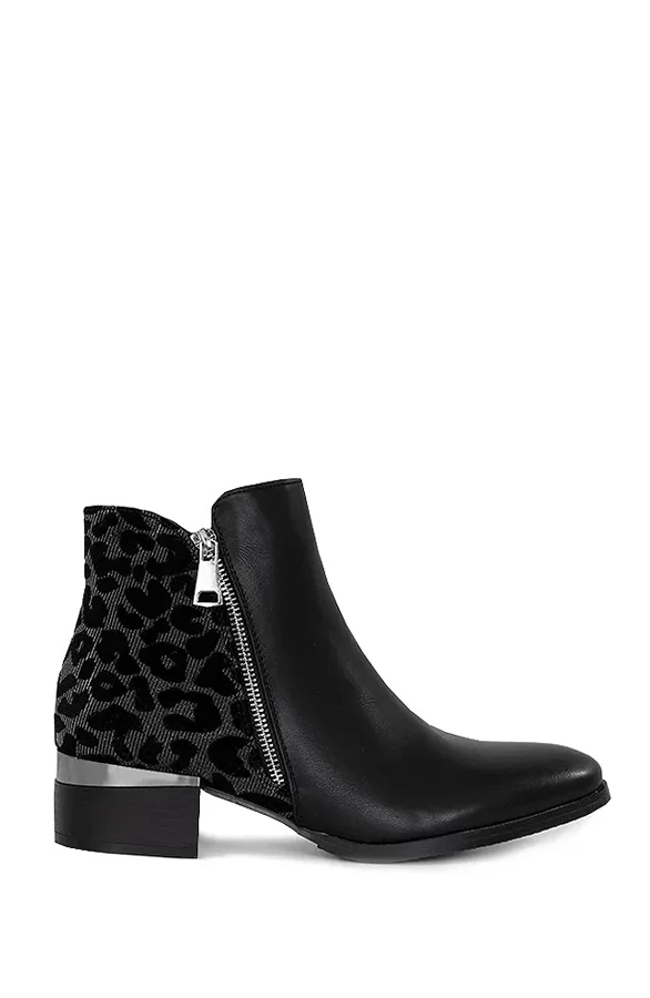 Details: ritssluiting, panterprint, zool is niet uitneembaar, glitterdraad en sierrits Materialen: 5% Suedine, 95% Kunstleer