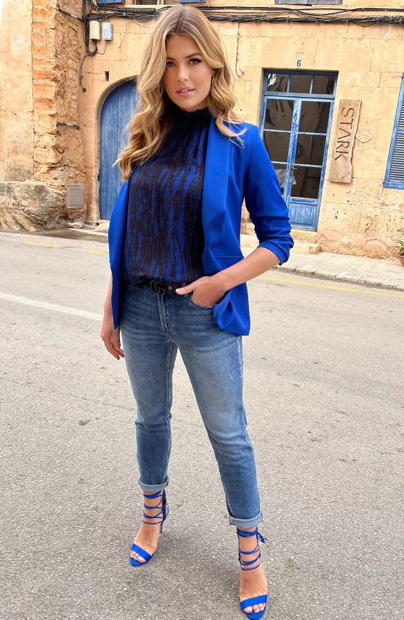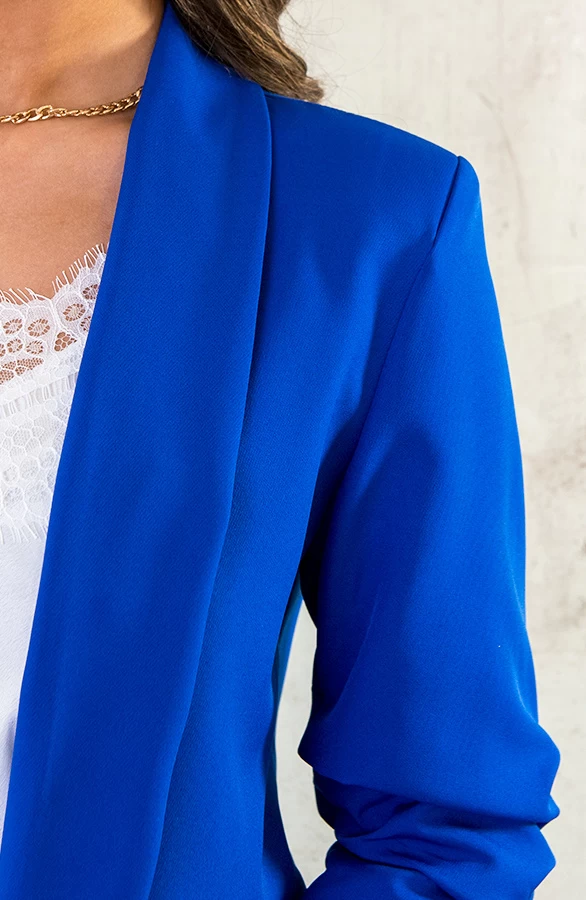 Product: Deze basic blazer in het kobaltblauw maakt jouw outfit helemaal af! De blazer is voorzien van nepzakken, heeft schoudervullingen en driekwart mouwen.