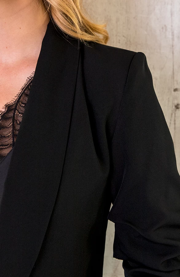 Product: Deze limited blazer mag niet ontbreken in jouw garderobe, de blazer is ideaal te combineren en geschikt voor meerdere gelegenheden. De blazer heeft schoudervullingen, nepzakken en driekwart mouwen.