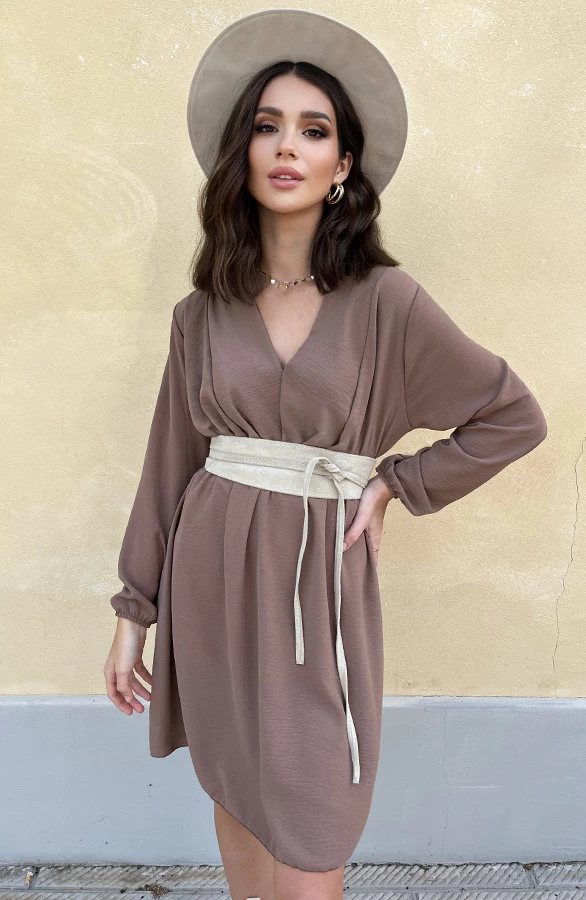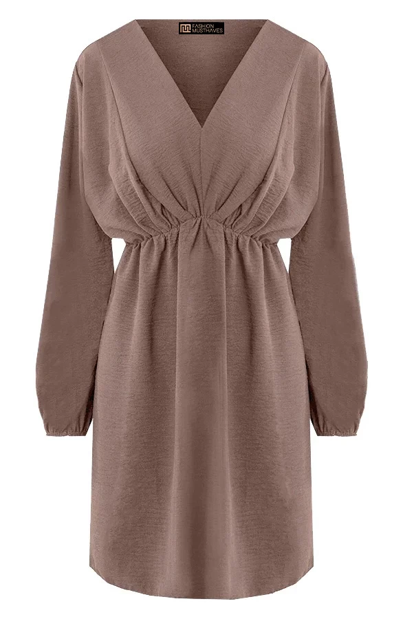 Product: Dit prachtige jurkje wil je toch hebben?! Het chocolade bruine jurkje is voorzien van elastiek in de taille en bij de mouwen. Style af met mooie sieraden voor een …