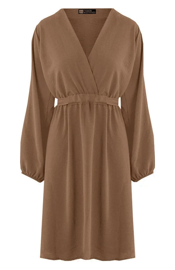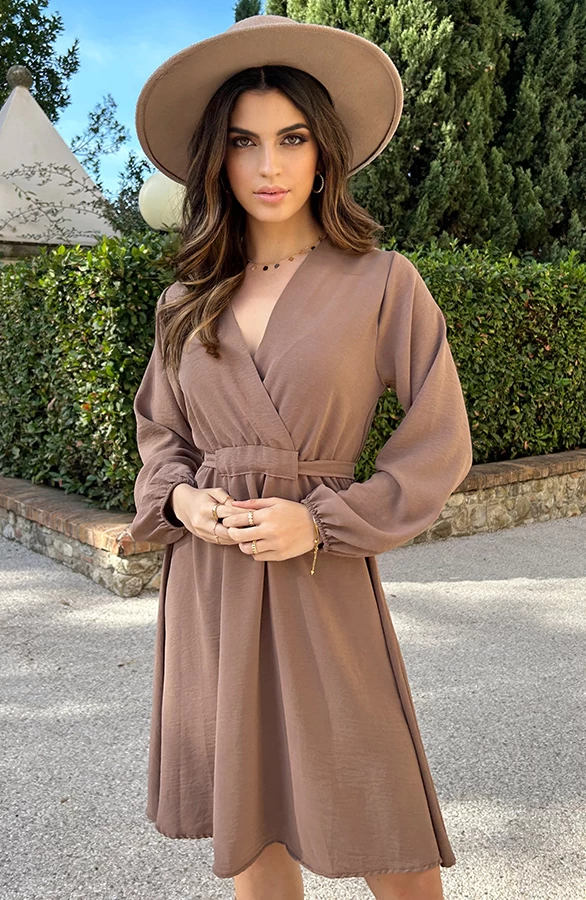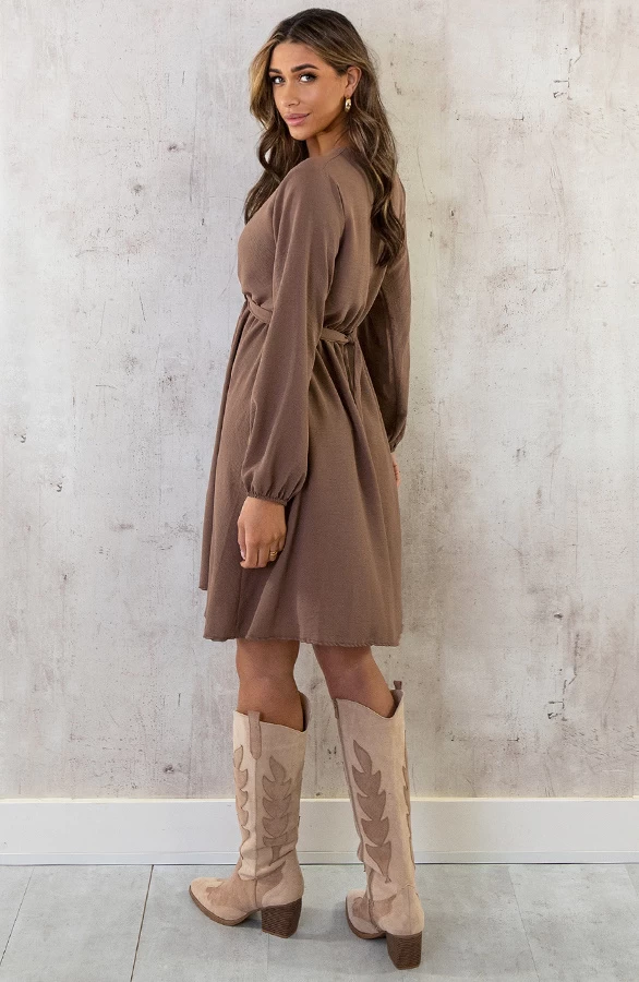 Product: We’ve got it! De perfecte jurk! Perfect voor meerdere gelegenheden. De jurk is voorzien van en v-hals en heeft een lint om te strikken.