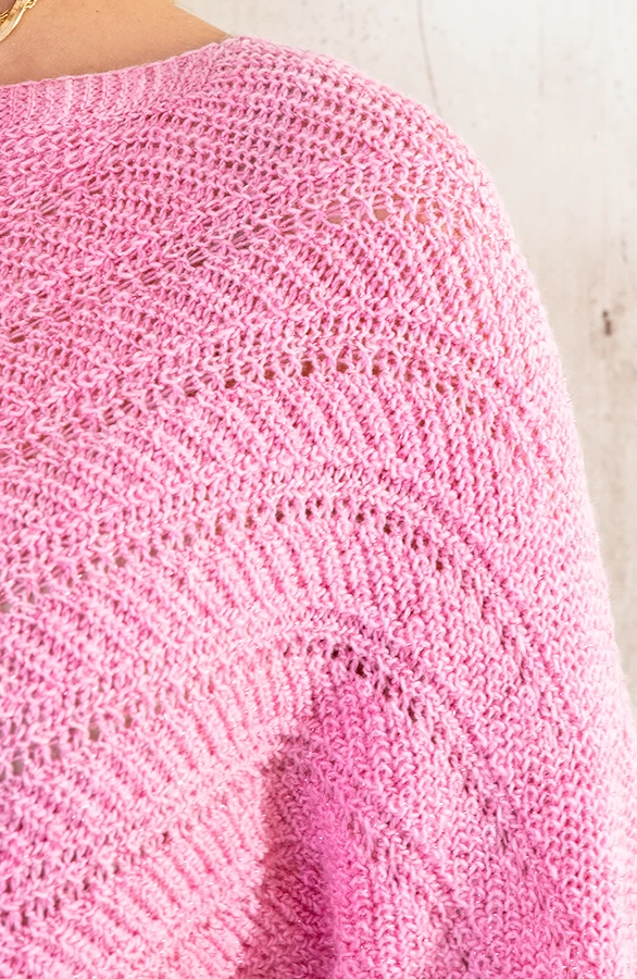 Details: ronde hals, lange mouwen, gehaakte stof en lurex Materialen: 10% Wol, 90% Acryl