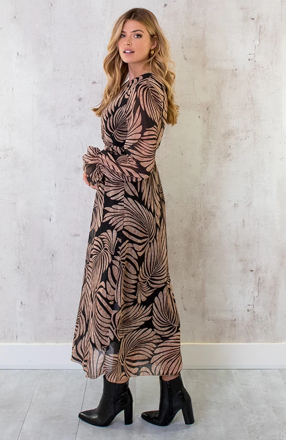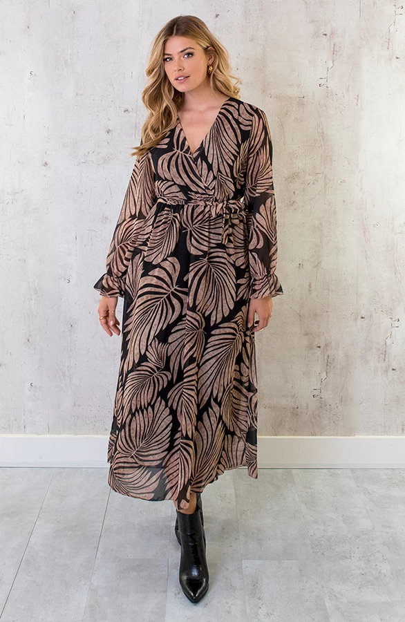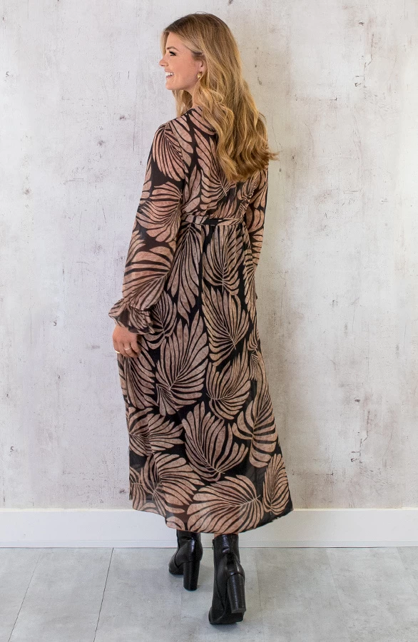 Product: Hoe leuk is deze dress met print?! De jurk is voorzien van een v-hals, lange mouwen en heeft elastiek in de taille.