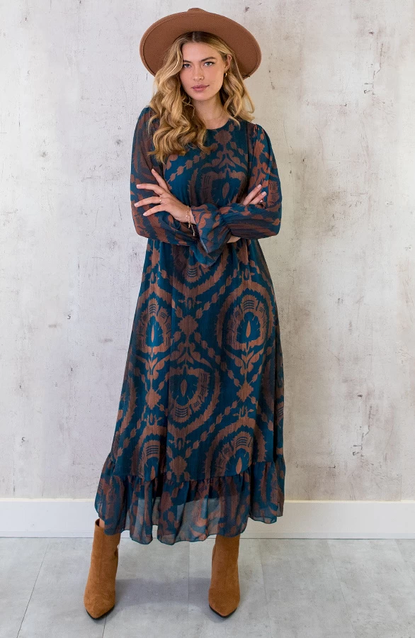 Product: Wauw! Met deze prachtige maxi jurk steel jij de show! De jurk is voorzien van elastiek in de taille en ruches aan de onderkant.