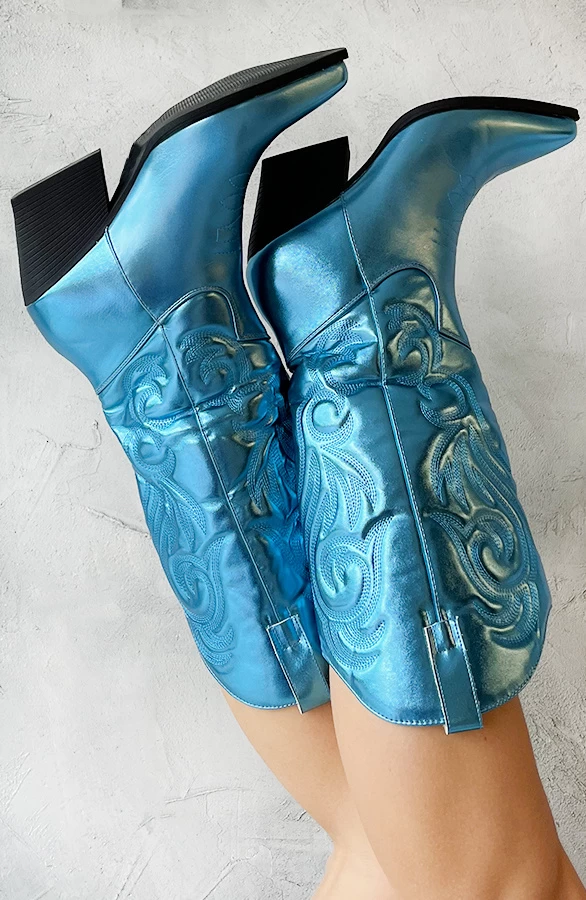 Product: Met deze eyecatchers maak jij jouw outfit compleet! De metallic laarzen zijn voorzien van een puntige neus.