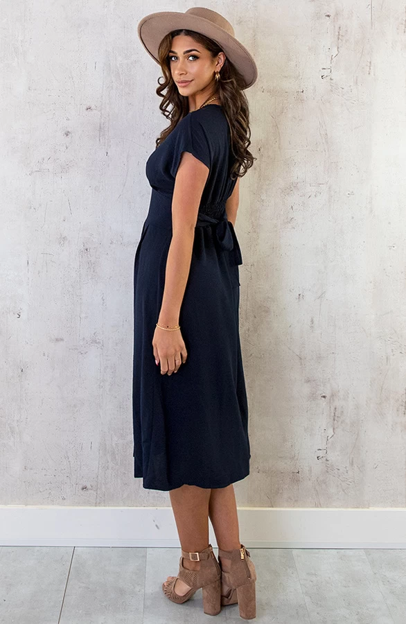Product: Wauw! Deze classy jurk is een aanwinst voor jouw garderobe! De jurk is voorzien van elastiek op de rug en een bijpassend lint om te strikken.
