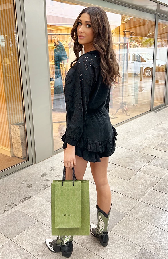Product: Pretty!! Deze zwarte mousseline blouse is voorzien van een knoopsluiting en broderie details. Combineer met de bijpassende skort voor een geweldige look!