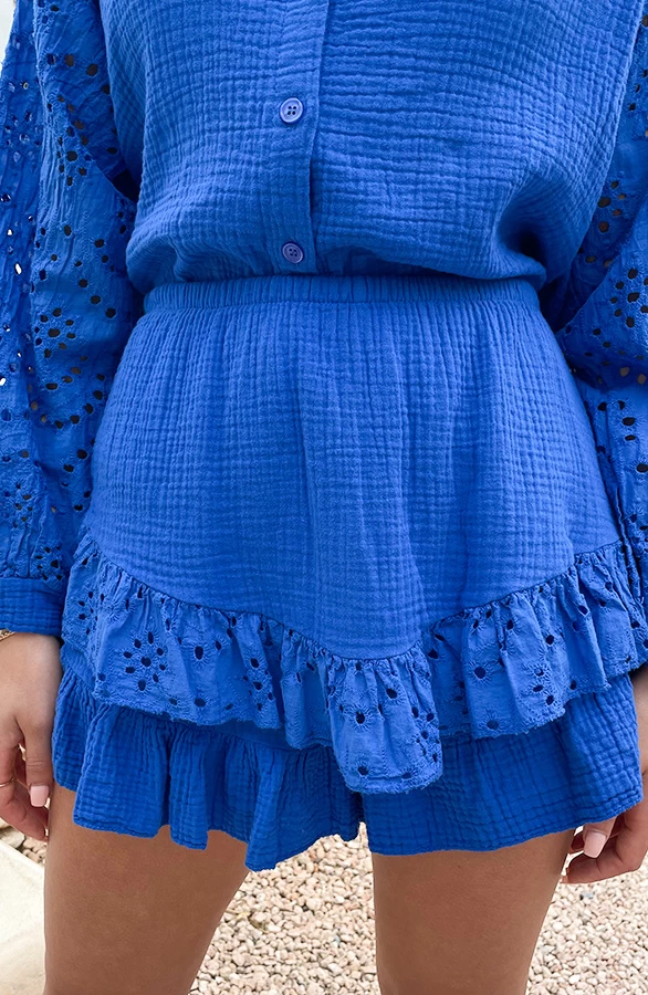 – Mousseline Skort Embroidery Kobalt t.w.v. €27,50