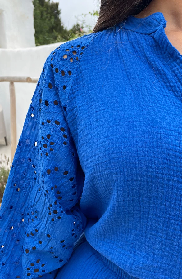 – Mousseline Blouse Embroidery Kobalt t.w.v. €34,95