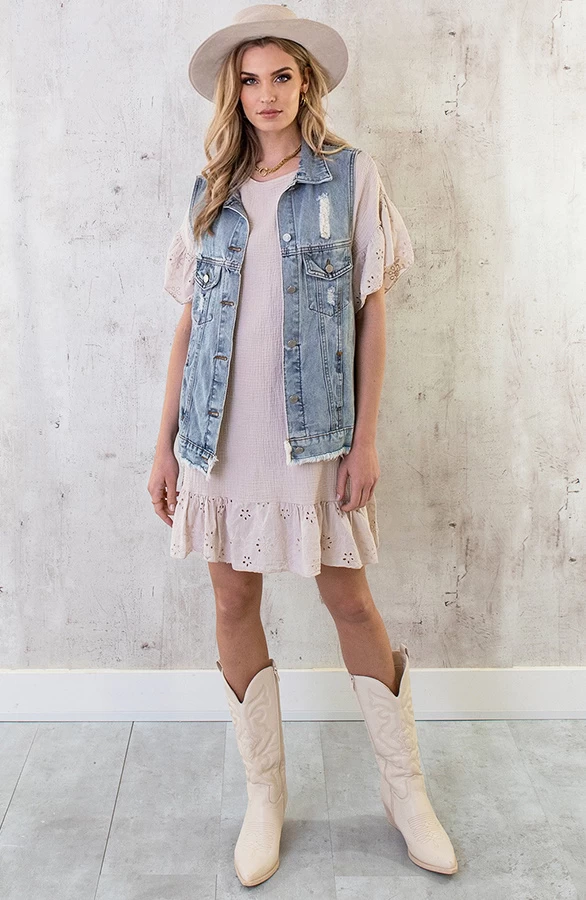Product: Deze beige oversized jurk is méga gewild! De katoenen embroidery jurk is het komende seizoen onmisbaar in jouw garderobe!