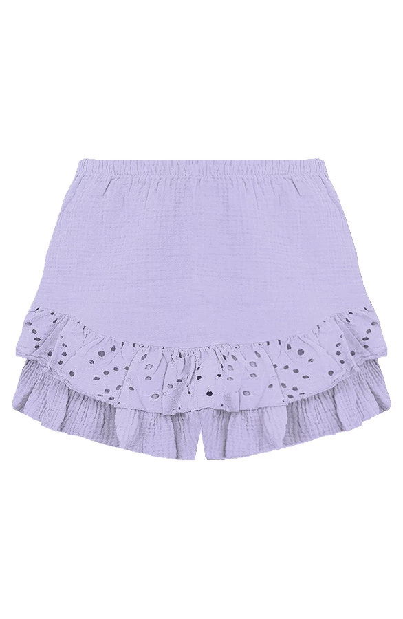 Product: Pretty! Deze lila skort is echt geweldig! De mousseline skort is voorzien van een elastieken band en embroidery details.